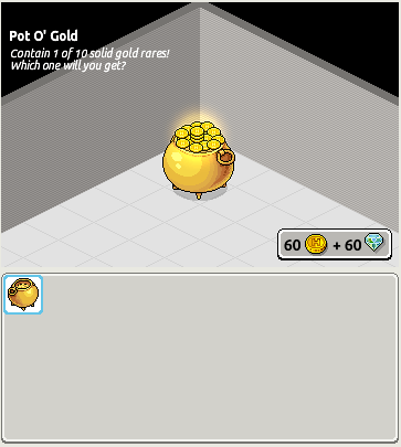 El furni que puede ser canjeado por los furnis Ártico Oro, se llama Caldero de Oro, dicho furni tiene un valor de 60 créditos y 60 diamantes, y estará disponible hoy durante 24 horas y los días 25 y 28 de noviembre.