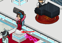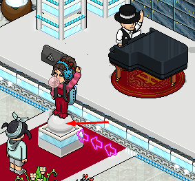 Presiona el botón blanco que te indicamos a continuación para que el pianista comience a tocar una canción.