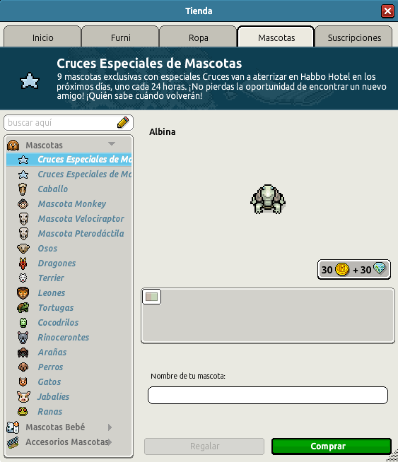 Tal y como leíste, el día de hoy ha llegado una nueva mascota para que podamos aprender y jugar con ella en nuestros tiempos libres en Habbo: una peculiar tortuga albina traída desde el pantano más recóndito de centro América. La misma tendrá un precio de 30