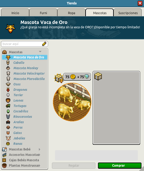 [INT] Cruce Especial: Vaca de Oro Hace 9 meses Luuuuucia! 18 Popular Archivada Información de la publicación Publicada: 16/07/2025 12:01:30 H.P.E. Autor: Luuuuucia! Último comentario:AguaMarina001 Ir Visitas: 389 Información general Categoría: Mascota Nombre: Vaca de oro Precio: 75 + 75 Fecha de inicio de venta: 16/07/2024 Fecha de final de venta: 18/07/2024 Lugar de venta: Tienda Imagen del catálogo Placa Dueño Mascota Vaca de Oro ¡Verifica esta placa!