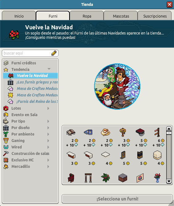 [INT] En venta: Antiguos Furnis de Navidad Hace 1 año Dantempo 13 Popular Archivada Información de la publicación Publicada: 28/11/2024 13:01:20 H.P.E. Autor: Dantempo Último comentario:@ngelytox Ir Visitas: 338 Información general Categoría: Vuelve la Navidad Tipo: Furnis normales Precio: Entre 25 y 13 + 20 Fecha de inicio de venta: 28/11/2024 Fecha de final de venta: 26/12/2024 Lugar de venta: Tienda Disponible en BC: Sí Imágenes del catálogo y de BC