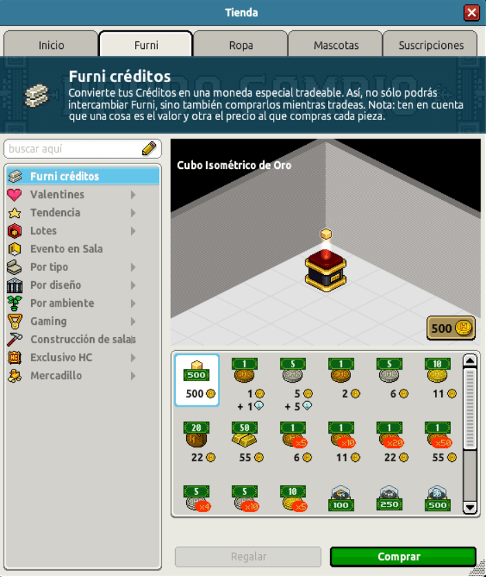 [INT] En venta: Canjeable Cubo Isométrico de Oro Hace 2 años Nieblia 7 Popular Archivada Información de la publicación Publicada: 21/02/2024 13:00:39 H.P.E. Autor: Nieblia Último comentario:@ngelytox Ir Visitas: 849 Información general Categoría: Habbo Créditos Nombre: Cubo Isométrico de Oro Precio: 500 Valor: 500 Fecha de inicio de venta: 21/02/2024 Fecha de final de venta: 28/02/2024 Lugar de venta: Tienda Imagen del ítem y catálogo