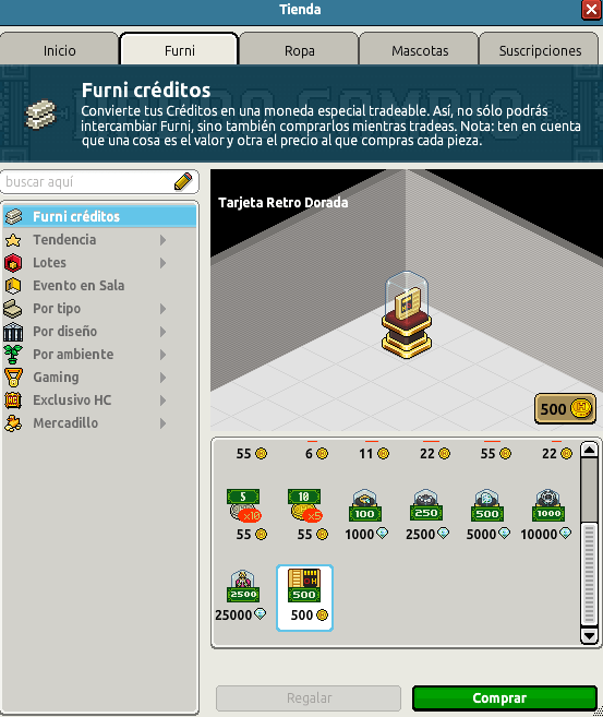 [INT] En venta: Canjeable Tarjeta Retro Dorada Hace 2 años Dantempo 14 Popular Archivada Información de la publicación Publicada: 06/11/2023 13:07:33 H.P.E. Autor: Dantempo Último comentario:francisco872 Ir Visitas: 732 Información general Categoría: Habbo Créditos Nombre: Tarjeta Retro Dorada Precio: 500 Fecha de inicio de venta: 06/11/2023 Fecha de final de venta: 13/11/2023 Lugar de venta: Tienda Imagen del ítem y catálogo Placa Tarjeta Retro Dorada ¡Verifica esta placa!