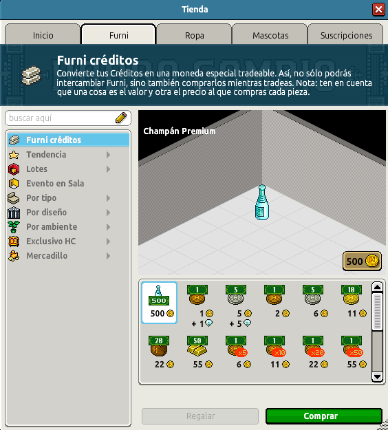 El furni que ha sido puesto a la venta durante tiempo limitado es nada más y nada menos que el furni canjeable Champán premium que tiene un valor de 500