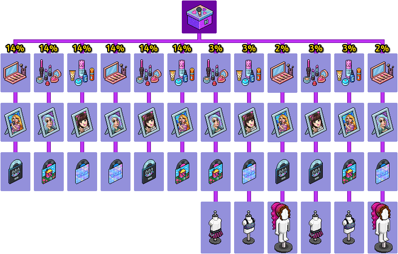 en el catálogo, abajo te indicamos las probabilidades de cada furni que podrás conseguir al abrir cada caja. Te recordamos que esta caja estará disponible por tan solo 24 horas, aunque será puesta a la venta varias veces durante este mes.
