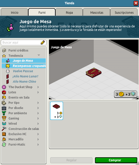 Nombre: Juego de Mesa Precio: 3 + 3 Fecha de inicio de venta: 05/03/2026 Fecha de final de venta: 06/03/2026 Lugar de venta: Tienda Efecto necesario: No Número de clics: 1