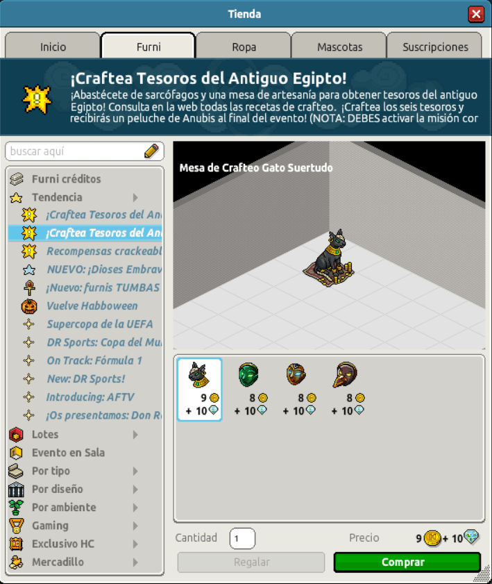 Inmediatamente después de craftear los seis tesoros egipcios, recibirás: