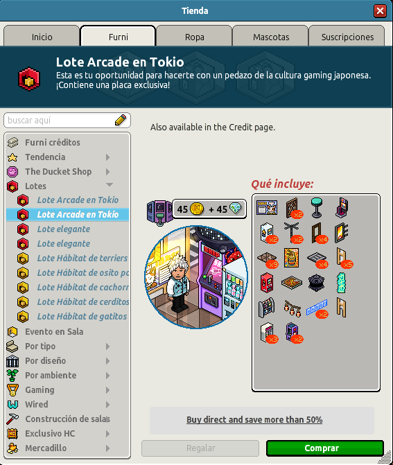 [INT] En venta: Lote Arcade en Tokio Hace 1 año Kyovyan 9 Popular Archivada Información de la publicación Publicada: 19/03/2025 13:01:00 H.P.E. Autor: Kyovyan Último comentario:@ngelytox Ir Visitas: 352 Información general Nombre: Lote Arcade en Tokio Precio: 45 + 45 | 99 Fecha de inicio de venta: 19/03/2025 Fecha de final de venta: 26/03/2025 Lugar de venta: Tienda + Habbo Compras Imágenes del catálogo Placa Lote Arcade en Tokio ¡Verifica esta placa!