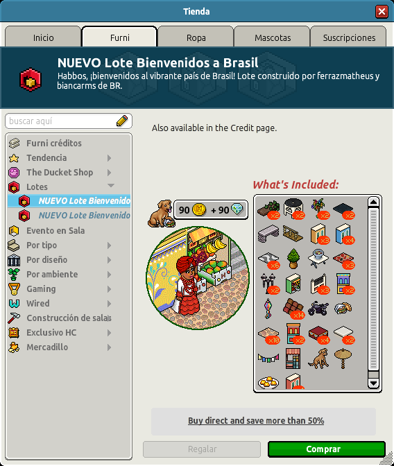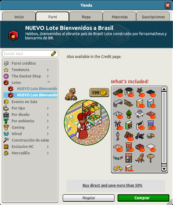 [INT] En venta: Lote Bienvenidos a Brasil Hace 5 meses Dantempo 6 Popular Archivada Información de la publicación Publicada: 04/06/2025 13:05:29 H.P.E. Autor: Dantempo Último comentario:Diego Ir Visitas: 260 Información general Nombre: Lote Bienvenidos a Brasil Precio: 90 + 90 | 199 Fecha de inicio de venta: 04/06/2025 Fecha de final de venta: 11/06/2025 Lugar de venta: Tienda + Habbo compras Imagen del catálogo Placa Lote Bienvenidos a Brasil ¡Verifica esta placa!