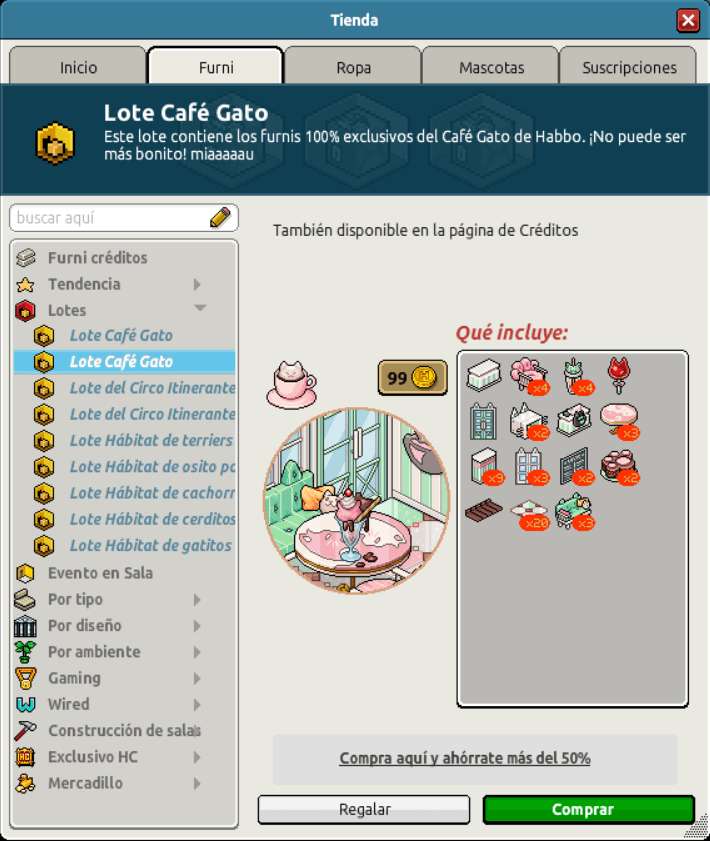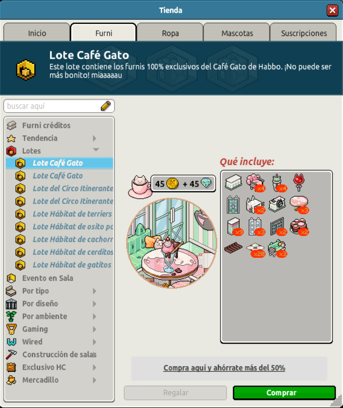 [INT] En venta: Lote Café Gato Hace 2 años Dantempo 9 Popular Archivada Información de la publicación Publicada: 08/08/2024 12:01:23 H.P.E. Autor: Dantempo Último comentario:@ngelytox Ir Visitas: 378 Información general Nombre: Lote Café Gato Precio: 45 + 45 | 99 Fecha de inicio de venta: 08/08/2024 Fecha de final de venta: 14/08/2024 Lugar de venta: Tienda + Habbo compras Imagen del catálogo Placa Lote Café Gato ¡Verifica esta placa!
