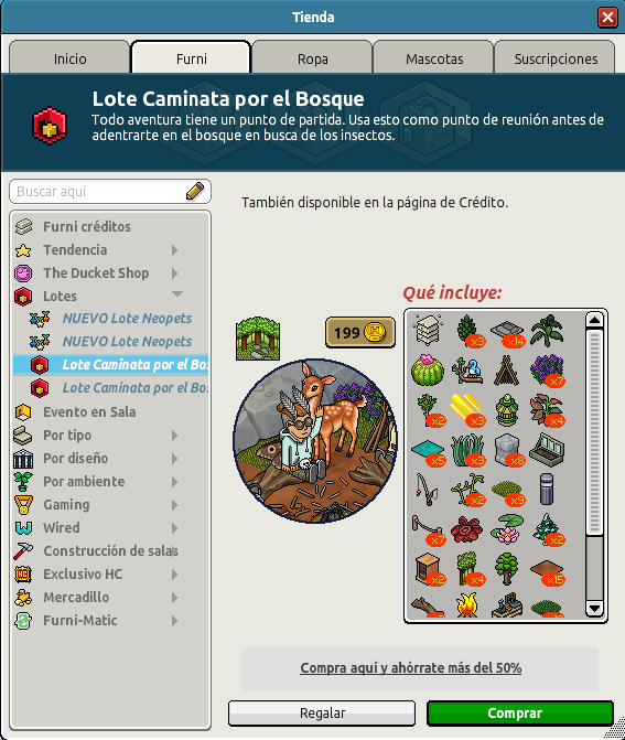 [INT] En venta: Lote Caminata por el Bosque Hace 2 meses Kyovyan 17 Popular Información de la publicación Se archivará automáticamente en 2 semanas. Publicada: 06/11/2025 13:01:34 H.P.E. Autor: Kyovyan Último comentario:@ngelytox Ir Visitas: 234 Información general Nombre: Lote Caminata por el Bosque Precio: 90 + 90 | 199 Fecha de inicio de venta: 06/11/2025 Fecha de final de venta: 13/11/2025 Lugar de venta: Tienda + Habbo Compras Imágenes del catálogo Placa Lote Caminata por el Bosque ¡Verifica esta placa!