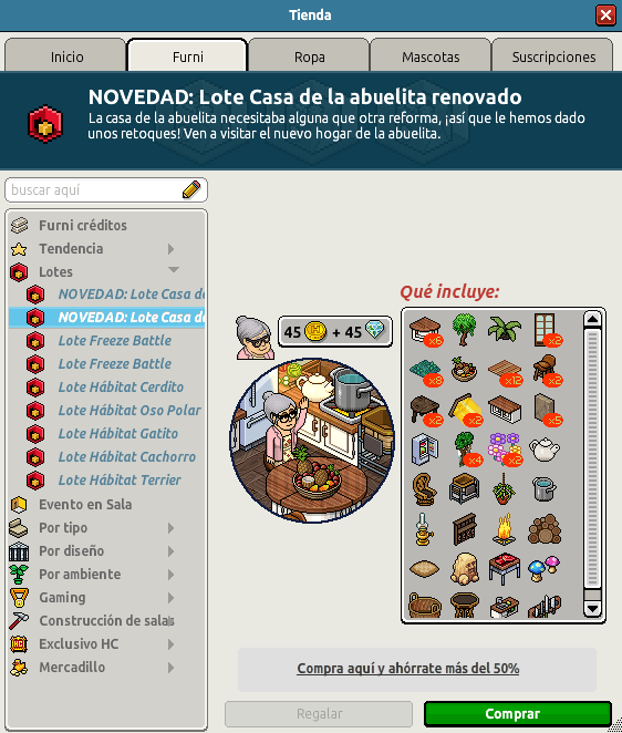 [INT] En venta: Lote Casa de la Abuelita Renovado Hace 2 años -Ashley 9 Popular Archivada Información de la publicación Publicada: 04/03/2024 13:05:15 H.P.E. Autor: -Ashley Último comentario:lifePOV Ir Visitas: 880 Información general Nombre: Lote Casa de la Abuelita Renovado Precio: 45 + 45 | 99 Fecha de inicio de venta: 04/03/2024 Fecha de final de venta: 11/03/2024 Lugar de venta: Tienda + Habbo Compras Imágenes de catálogo Placa Lote Casa de la Abuelita Renovado ¡Verifica esta placa!