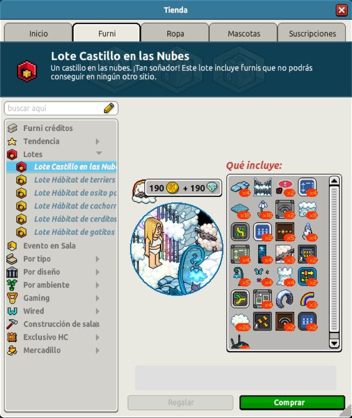 [INT] En venta: Lote Castillo en las Nubes Hace 1 año Luuuuucia! 10 Popular Archivada Información de la publicación Publicada: 06/11/2024 13:03:10 H.P.E. Autor: Luuuuucia! Último comentario:@ngelytox Ir Visitas: 525 Información general Nombre: Lote Castillo en las Nubes Precio: 190 + 190 Fecha de inicio de venta: 06/11/2024 Fecha de final de venta: 13/11/2024 Lugar de venta: Tienda + Habbo compras Imagen del catálogo Placa Lote Castillo en las Nubes ¡Verifica esta placa!