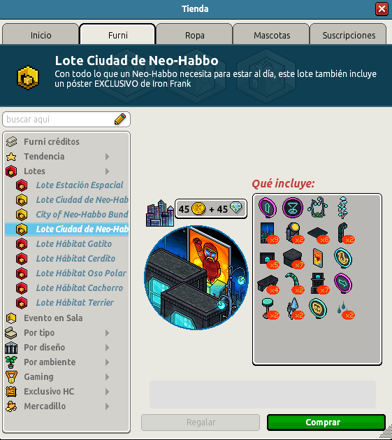[INT] En venta: Lote Ciudad de Neo-Habbo Hace 3 años Kyovyan 10 Popular Archivada Información de la publicación Publicada: 12/07/2023 14:15:57 H.P.E. Autor: Kyovyan Último comentario:@ngelytox Ir Visitas: 567 Información general Nombre: Lote Ciudad de Neo-Habbo Precio: 45 + 45 | 99 Fecha de inicio de venta: 12/07/2023 Fecha de final de venta: 19/07/2023 Lugar de venta: Tienda + Habbo Compras Imagen del catálogo Placa Lote Ciudad de Neo-Habbo ¡Verifica esta placa!