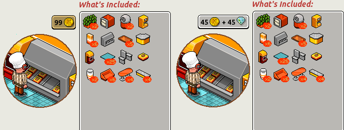Hablamos del Lote Clásico Habburgués, un pack de furnis con temática de restaurante de comida rápida y cuyos colores y estética los hemos visto en repetidas ocasiones y nos teletransporta a un pasado que muchos añoramos o del que tenemos bonitos recuerdos. En cuanto a su precio, estará disponible por 45 créditos