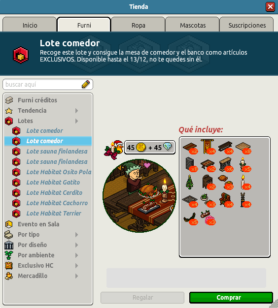 Estamos hablando del Lote Comedor, el cual salió hace unos años pero nunca llegó a volver hasta el día de hoy. Podrás hacerte con el por el módico precio de 45