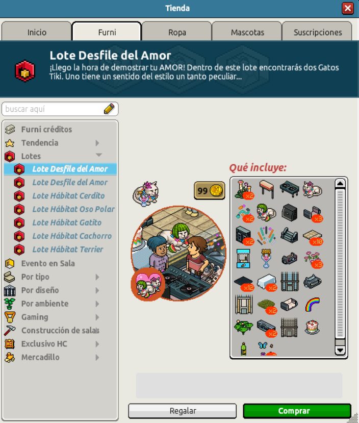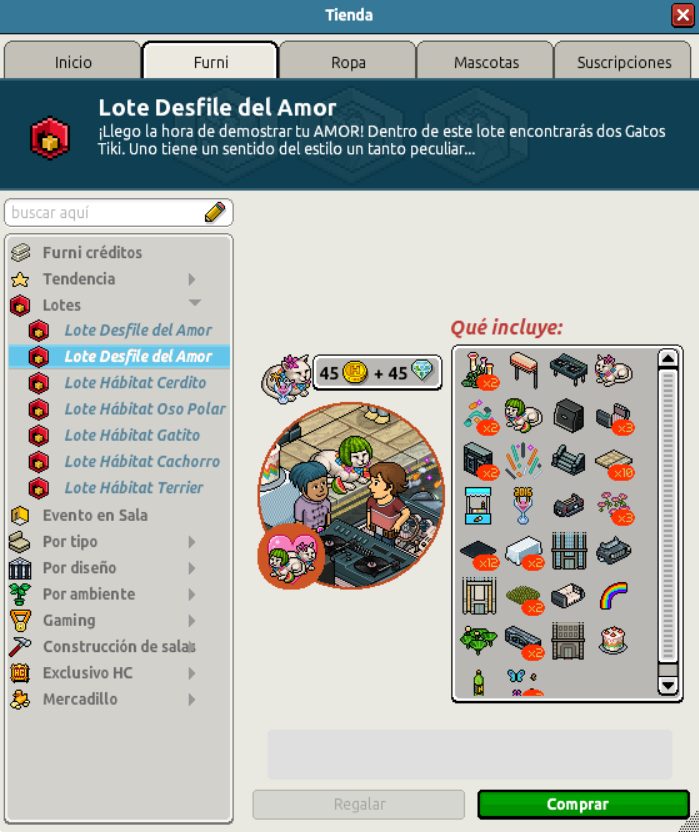 [INT] En venta: Lote Desfile del Amor Hace 2 años Dantempo 12 Popular Archivada Información de la publicación Publicada: 08/04/2024 13:02:52 H.P.E. Autor: Dantempo Último comentario:@ngelytox Ir Visitas: 440 Información general Nombre: Lote Desfile del Amor Precio: 45 + 45 | 99 Fecha de inicio de venta: 08/04/2024 Fecha de final de venta: 15/04/2024 Lugar de venta: Tienda + Habbo compras Imagen del catálogo Placa Lote Desfile del Amor ¡Verifica esta placa!