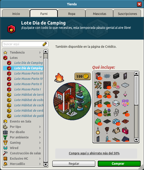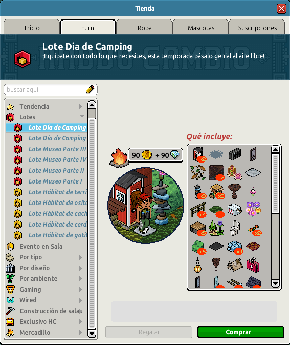[INT] En venta: Lote Día de Camping Hace 1 año Kyovyan 9 Popular Archivada Información de la publicación Publicada: 23/01/2025 13:01:32 H.P.E. Autor: Kyovyan Último comentario:nandoAH Ir Visitas: 411 Información general Nombre: Lote Día de Camping Precio: 90 + 90 | 199 Fecha de inicio de venta: 23/01/2025 Fecha de final de venta: 30/01/2025 Lugar de venta: Tienda + Habbo Compras Imágenes del catálogo Placa Lote Día de Camping ¡Verifica esta placa!