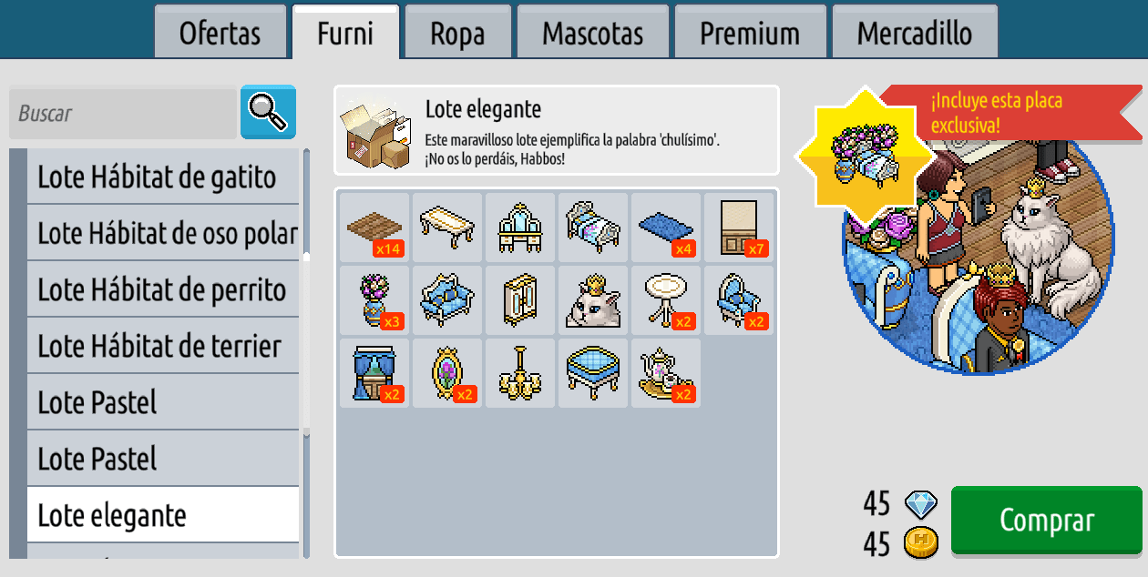 ¿Qué tal te ha parecido este lote? ¿Lo encuentra elegante? ¡Déjanos todas tus opiniones en los comentarios! Recuerda visitar a diario HabboTemplarios para que te enteres de todas las novedades del hotel.