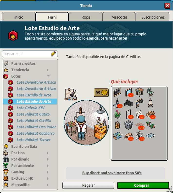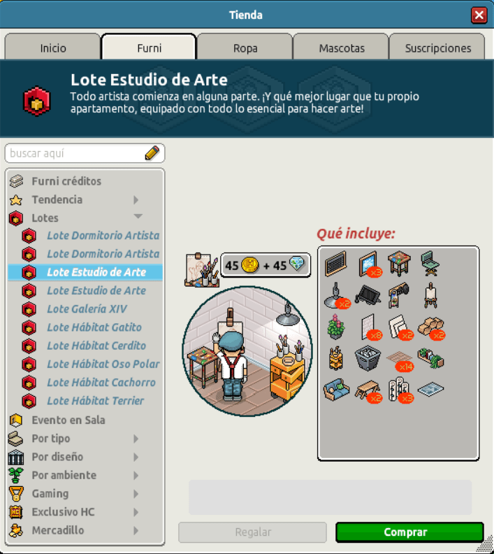 [INT] En venta: Lote Estudio de Arte Hace 3 años Luuuuucia! 5 Popular Archivada Información de la publicación Publicada: 05/06/2023 13:04:18 H.P.E. Autor: Luuuuucia! Último comentario:@ngelytox Ir Visitas: 489 Información general Nombre: Lote Estudio de Arte Precio: 45 + 45 | 99 Fecha de inicio de venta: 05/06/2023 Fecha de final de venta: 12/06/2023 Lugar de venta: Tienda + Habbo compras Imagen del catálogo Placa Lote Estudio de Arte ¡Verifica esta placa!