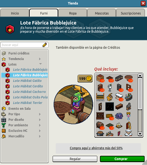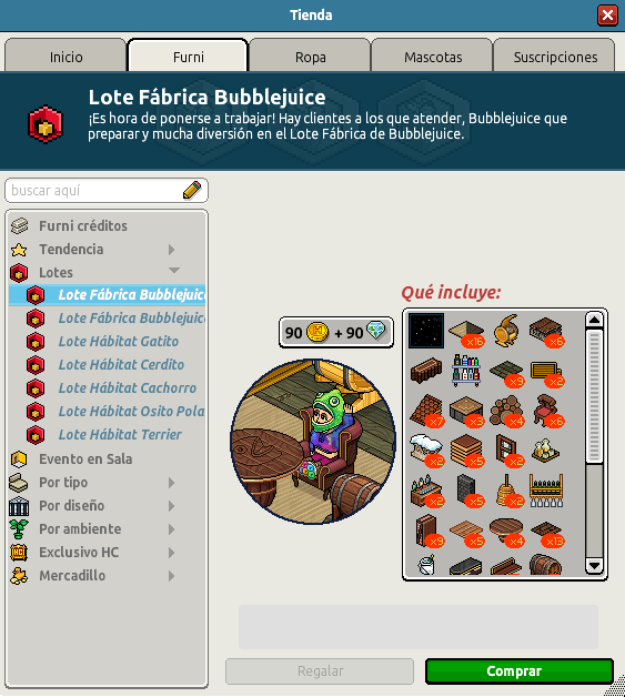[INT] En venta: Lote Fábrica BubbleJuice Hace 3 años Necromax. 6 Popular Archivada Información de la publicación Publicada: 17/05/2023 13:03:09 H.P.E. Actualización: 22/05/2023 14:35:30 H.P.E. Autor: Necromax. Último comentario:@ngelytox Ir Visitas: 765 Información general Nombre: Lote Fábrica Bubblejuice Precio: 90 + 90 | 199 Fecha de inicio de venta: 17/05/2023 Fecha de final de venta: 24/05/2023 Lugar de venta: Tienda + Habbo compras Imagen del catálogo Placa Lote Fábrica de Bubblejuice ¡Verifica esta placa!