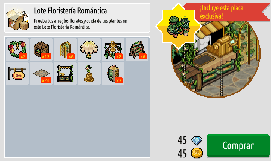 Estamos hablando del nuevo Lote Floristería Romántica, que ya se encuentra disponible en la tienda y su valor es de 45