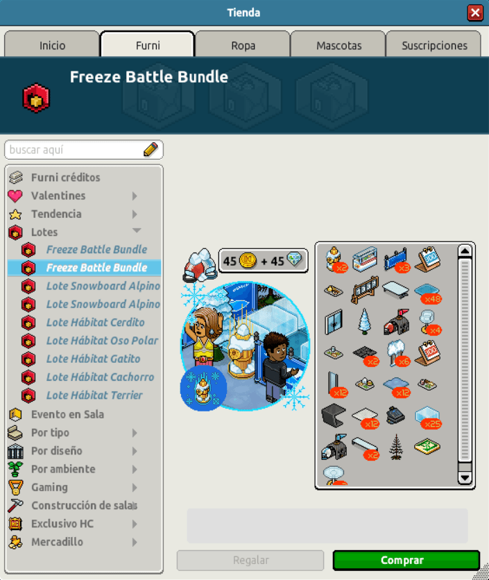 [INT] En venta: Lote Freeze Battle Hace 2 años -Ashley 6 Popular Archivada Información de la publicación Publicada: 28/02/2024 13:01:19 H.P.E. Autor: -Ashley Último comentario:@ngelytox Ir Visitas: 403 Información general Nombre: Lote Freeze Battle Precio: 45 + 45 | 99 Fecha de inicio de venta: 28/02/2024 Fecha de final de venta: 06/03/2024 Lugar de venta: Tienda + Habbo compras Imagen del catálogo Placa Lote Freeze Battle ¡Verifica esta placa!