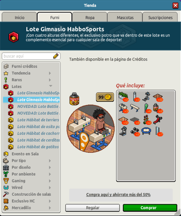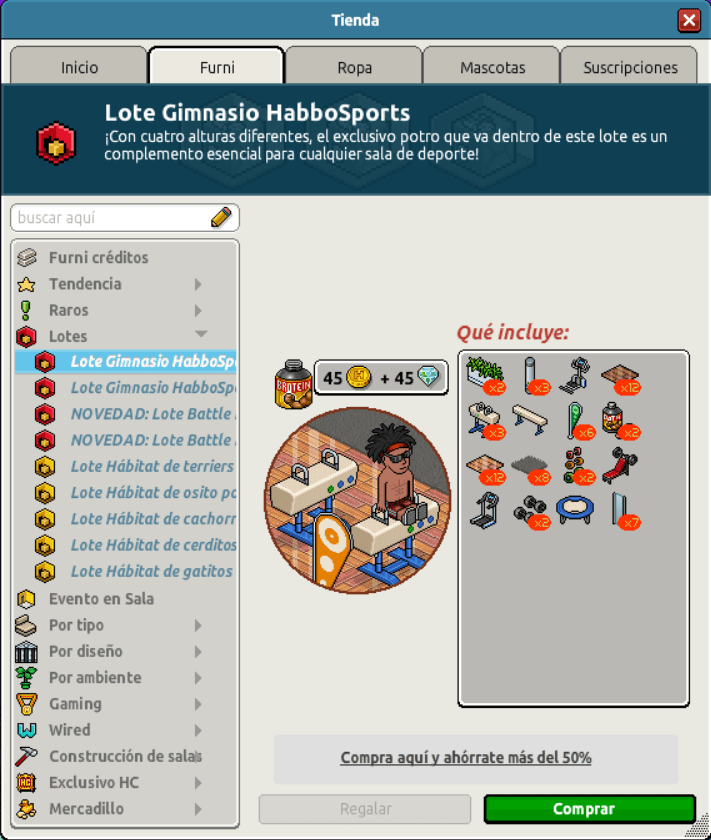 [INT] En venta: Lote Gimnasio HabboSports Hace 2 años :.Davids.:10: 7 Popular Archivada Información de la publicación Publicada: 24/07/2024 12:02:58 H.P.E. Autor: :.Davids.:10: Último comentario:@ngelytox Ir Visitas: 314 Información general Nombre: Lote Gimnasio HabboSports Precio: 45 + 45 | 99 Fecha de inicio de venta: 24/07/2024 Fecha de final de venta: 31/07/2024 Lugar de venta: Tienda + Habbo compras Imagen del catálogo Placa Lote Gimnasio HabboSports ¡Verifica esta placa!