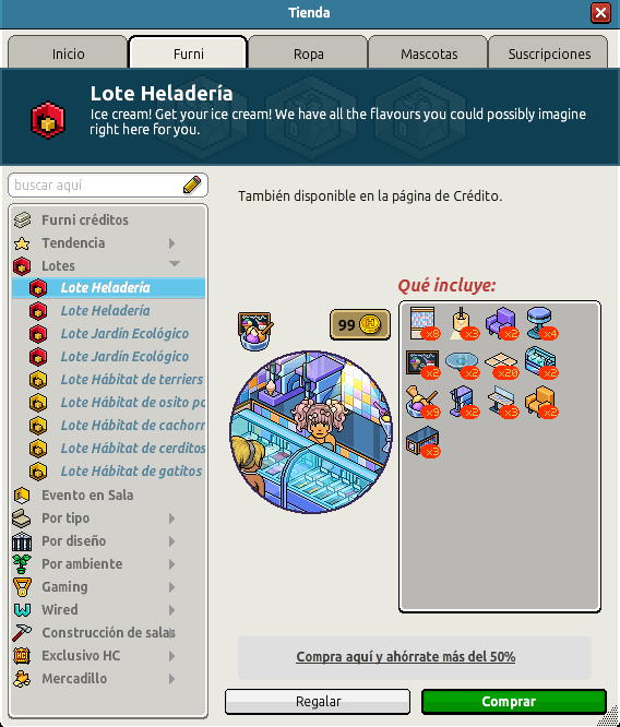 [INT] En venta: Lote Heladería Hace 10 meses Agathys 10 Popular Archivada Información de la publicación Publicada: 26/02/2025 13:02:09 H.P.E. Autor: Agathys Último comentario:@ngelytox Ir Visitas: 386 Información general Nombre: Lote Heladería Precio: 45 + 45 | 99 Fecha de inicio de venta: 26/02/2025 Fecha de final de venta: 05/03/2025 Lugar de venta: Tienda + Habbo compras Imagen del catálogo Placa Lote Heladería ¡Verifica esta placa!