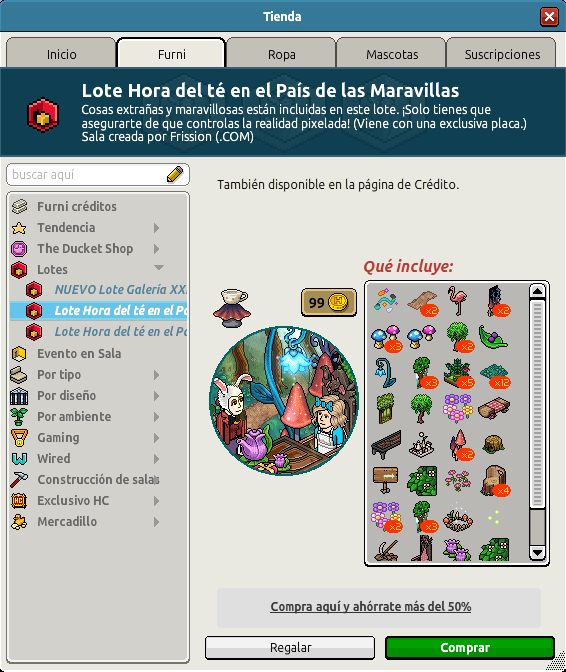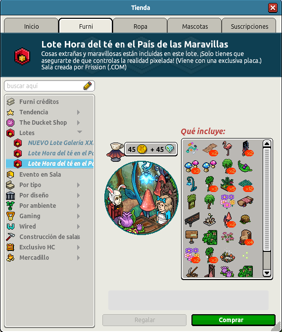 [INT] En venta: Lote Hora del Té en el País de las Maravillas Hace 7 meses Agathys 7 Popular Archivada Información de la publicación Publicada: 21/05/2025 13:01:13 H.P.E. Autor: Agathys Último comentario:Diego Ir Visitas: 315 Información general Nombre: Lote Hora del Té en el País de las Maravillas Precio: 45 + 45 | 99 Fecha de inicio de venta: 21/05/2025 Fecha de final de venta: 28/05/2025 Lugar de venta: Tienda + Habbo Compras Imágenes de catálogo Placa Lote Hora del Té en el País de las Maravillas ¡Verifica esta placa!
