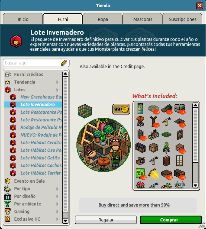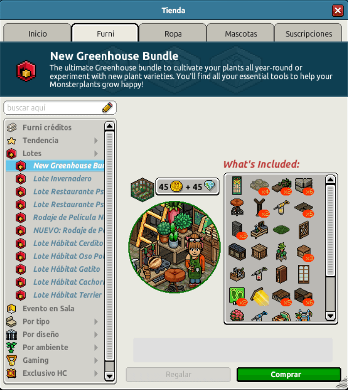 [INT] En venta: Lote Invernadero Botánico Hace 3 años Kyovyan 6 Popular Archivada Información de la publicación Publicada: 14/08/2023 13:11:18 H.P.E. Autor: Kyovyan Último comentario:@ngelytox Ir Visitas: 791 Información general Nombre: Lote Invernadero Botánico Precio: 45 + 45 | 99 Fecha de inicio de venta: 14/08/2023 Fecha de final de venta: 21/08/2023 Lugar de venta: Tienda + Habbo Compras Imagen del catálogo Placa Nuevo Lote Invernadero ¡Verifica esta placa!