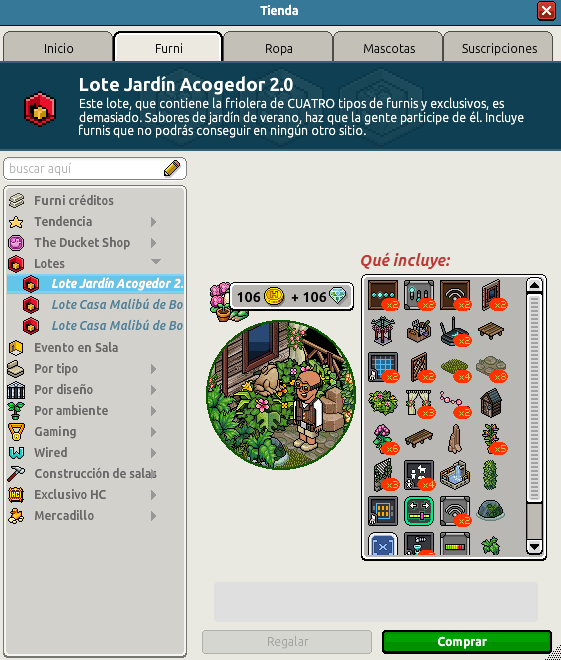 [INT] En venta: Lote Jardín Acogedor 2.0 Hace 9 meses Luuuuucia! 12 Popular Archivada Información de la publicación Publicada: 31/07/2025 12:00:46 H.P.E. Autor: Luuuuucia! Último comentario:Nieblia Ir Visitas: 326 Información general Nombre: Lote Jardín Acogedor 2.0 Precio: 106 + 106 Fecha de inicio de venta: 31/07/2025 Fecha de final de venta: 07/08/2025 Lugar de venta: Tienda + Habbo Compras Imagen del catálogo Placa Lote Jardín Acogedor 2.0 ¡Verifica esta placa!