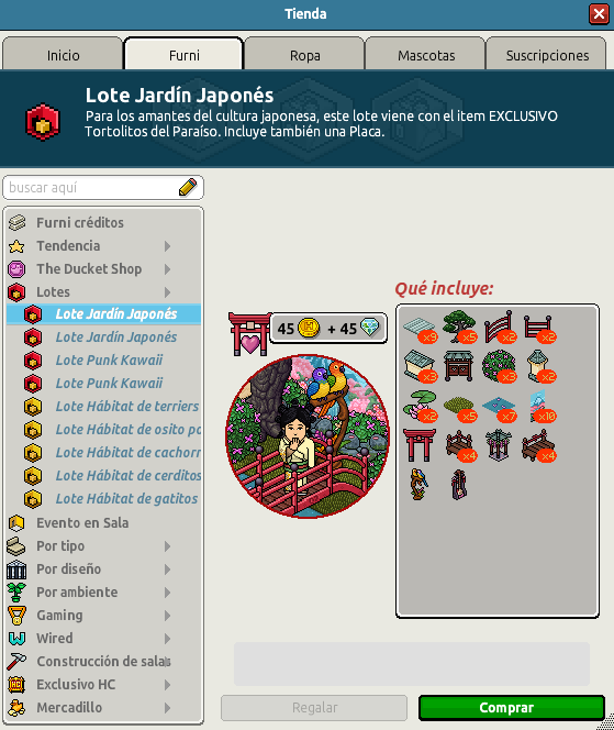 [INT] En venta: Lote Jardín del amor Japonés Hace 1 año Agathys 16 Popular Archivada Información de la publicación Publicada: 12/03/2025 13:01:21 H.P.E. Actualización: 16/03/2025 16:14:53 H.P.E. Autor: Agathys Último comentario:@ngelytox Ir Visitas: 312 Información general Nombre: Lote Jardín del amor Japonés Precio: 45 + 45 | 99 Fecha de inicio de venta: 12/03/2025 Fecha de final de venta: 19/03/2025 Lugar de venta: Tienda + Habbo compras Imagen del catálogo Placa Lote Jardín del amor Japonés ¡Verifica esta placa!