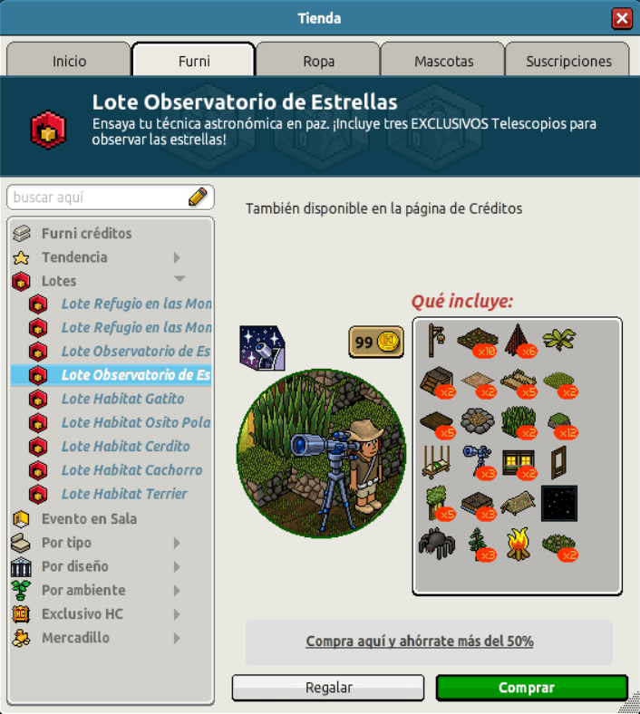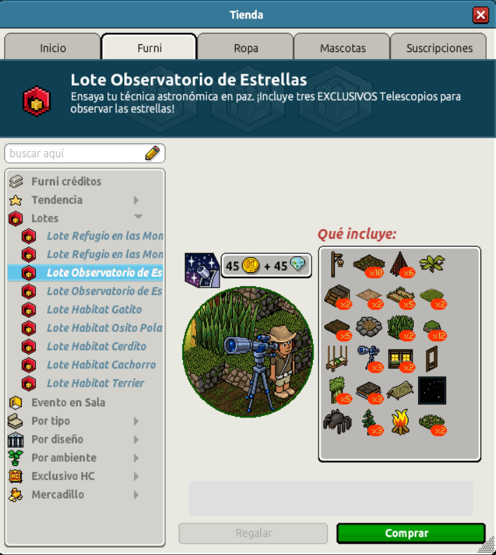 Se trata nada más ni nada menso que del Lote Observatorio de Estrellas, un clásico de los lotes de Habbo que ya está a la venta por el precio de 45