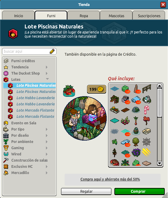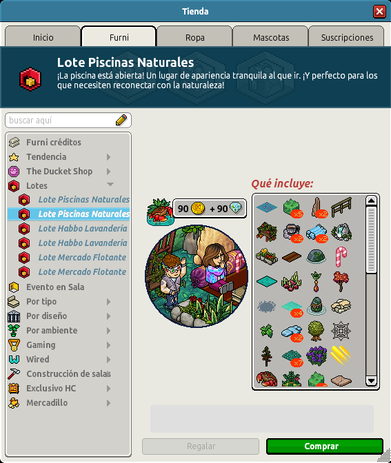 [INT] En venta: Lote Piscinas Naturales Hace 10 meses Agathys 9 Popular Archivada Información de la publicación Publicada: 16/06/2025 12:03:30 H.P.E. Autor: Agathys Último comentario:Diego Ir Visitas: 387 Información general Nombre: Lote Piscinas Naturales Precio: 90 + 90 | 199 Fecha de inicio de venta: 16/06/2025 Fecha de final de venta: 23/06/2025 Lugar de venta: Tienda + Habbo compras Imagen del catálogo Placa Lote Piscinas Naturales ¡Verifica esta placa!