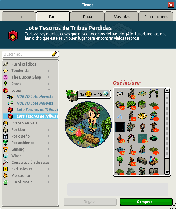 [INT] En venta: Lote Tesoros de Tribus Perdidas Hace 1 mes Luuuuucia! 7 Información de la publicación Se archivará automáticamente en 3 semanas. Publicada: 13/11/2025 13:01:42 H.P.E. Autor: Luuuuucia! Último comentario:@ngelytox Ir Visitas: 159 Información general Nombre: Lote Tesoros de Tribus Perdidas Precio: 45 + 45 | 99 Fecha de inicio de venta: 13/11/2025 Fecha de final de venta: 20/11/2025 Lugar de venta: Tienda + Habbo Compras Imágenes del catálogo Placa Lote Tesoros de Tribus Perdidas ¡Verifica esta placa!