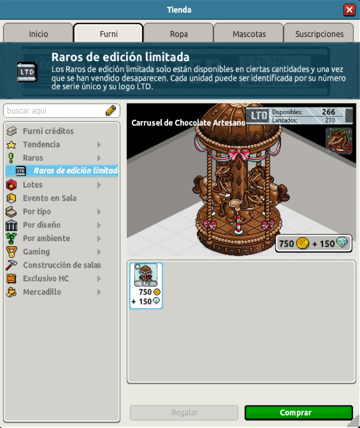 Me gusta el furni, pero el precio es excesivo. A ver si lo puedo conseguir de los baratos que suban a merca