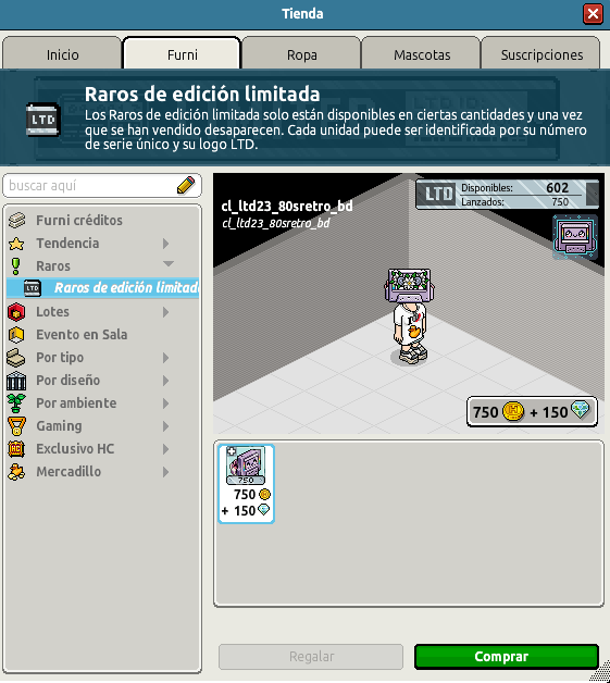 Nombre: LTD Traje Nostalgia Ochentera Precio: 750 + 150 Cantidad: 750 unidades Fecha de inicio de venta: 07/08/23 Fecha de final de venta: Hasta agotar sus unidades Lugar de venta: Tienda