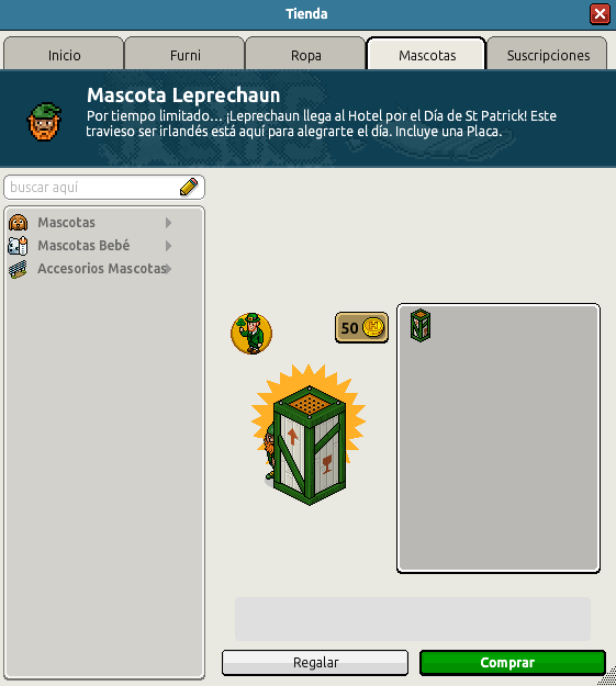 La mascota Leprechaun podrás encontrarla en el catálogo desde hoy, bajo un costo de 50