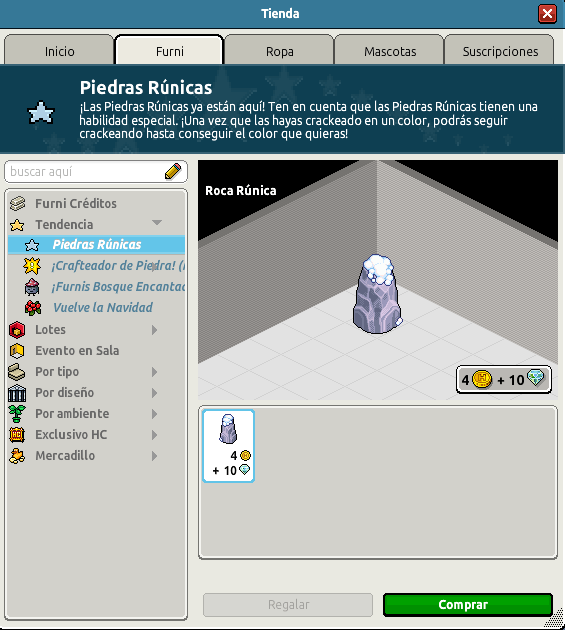 . Estarán disponibles por tiempo limitado, ya es la última vez que estarán disponibles en la tienda. Podrás crackear el furni tantas veces como quieras hasta obtener el color que prefieras. Utiliza la mesa de crafteo «Crafteador de Piedra que se encuentra en el catálogo por 10