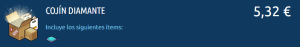 [INT] En venta: RARO Almohadón Diamante Hace 3 años Luuuuucia! 15 Popular Archivada Información de la publicación Publicada: 25/04/2023 14:15:34 H.P.E. Autor: Luuuuucia! Último comentario:@ngelytox Ir Visitas: 545 Información general Nombre: RARO Almohadón Diamante Precio: 5,32€ Fecha de inicio de venta: 25/05/23 Fecha de final de venta: 28/05/23 Lugar de venta: Habbo compras Categoría: Furni Imagen del ítem y catálogo Placa Raro Cojín Diamante ¡Verifica esta placa!