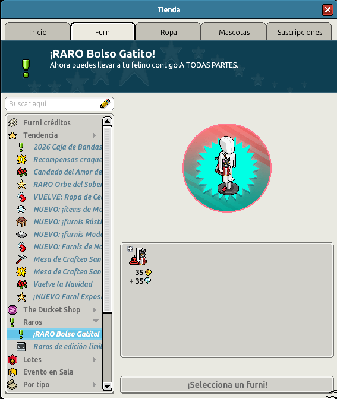 [INT] En venta: RARO Bolso Gatito Hace 4 meses .:Javierr:. 17 Popular Archivada Información de la publicación Publicada: 26/12/2025 13:02:02 H.P.E. Autor: .:Javierr:. Último comentario:@ngelytox Ir Visitas: 406 Información general Categoría: Ropa Nombre: Bolso Gatito Precio: 35 + 35 Fecha de inicio de venta: 26/12/2025 Fecha de final de venta: 29/12/2025 Lugar de venta: Tienda Imagen del ítem y catálogo Placa RARO Bolso Gatito ¡Verifica esta placa!