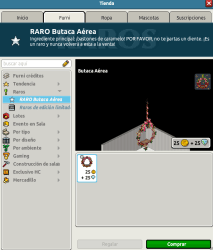 [INT] En venta: Raro Butaca Aérea Hace 2 años Nieblia 10 Popular Archivada Información de la publicación Publicada: 15/12/2023 13:01:22 H.P.E. Autor: Nieblia Último comentario:@ngelytox Ir Visitas: 552 Información general Categoría: Furni Nombre: Raro Butaca Aérea Precio: 25 + 25 Fecha de inicio de venta: 15/12/2023 Fecha de final de venta: 18/12/2023 Lugar de venta: Tienda Imagen del ítem y catálogo Placa Raro Butaca Aérea ¡Verifica esta placa!