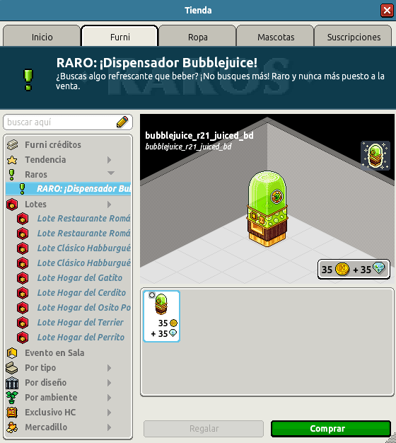 En esta campaña de BubbleJuice que ha llegado a Noviembre con muchas novedades. Entre ellas lotes, raros y ropa que no volverá a venderse. Y hoy es la oportunidad de conseguir un furni exclusivo para refrescarte. Te lo presentamos a continuación.