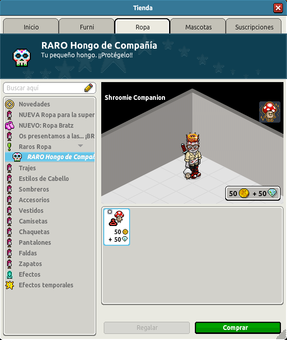 [INT] En venta: RARO Hongo de Compañía Hace 1 semana Luuuuucia! 7 Popular Información de la publicación Se archivará automáticamente en 2 meses. Publicada: 17/10/2025 13:00:39 H.P.E. Autor: Luuuuucia! Último comentario:@ngelytox Ir Visitas: 191 Información general Categoría: Ropa Nombre: RARO Hongo de Compañía Precio: 50 + 50 Fecha de inicio de venta: 17/10/2025 Fecha de final de venta: 20/10/2025 Lugar de venta: Tienda Imágenes del ítem y de catálogo Placa Raro Hongo de Compañía ¡Verifica esta placa!