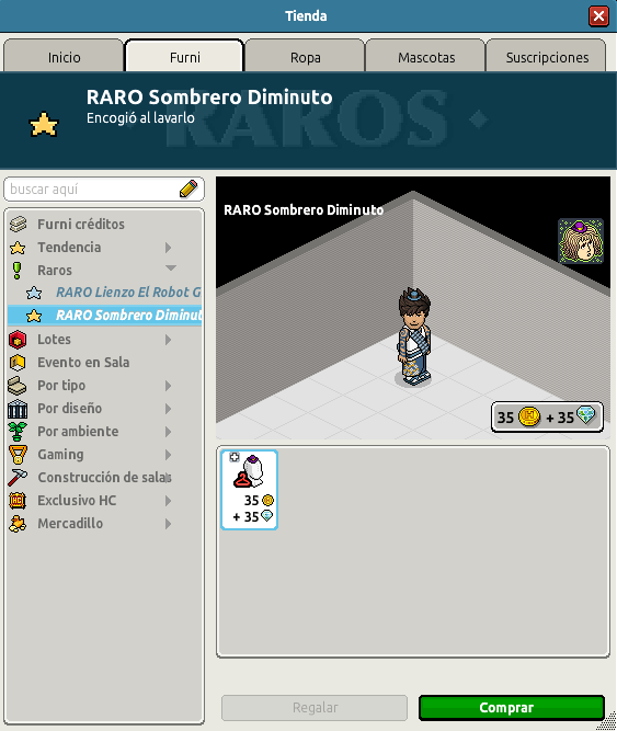 [INT] En venta: Raro Sombrero Diminuto Hace 2 años Luuuuucia! 9 Popular Archivada Información de la publicación Publicada: 26/04/2024 13:00:52 H.P.E. Autor: Luuuuucia! Último comentario:rubenu-b4n Ir Visitas: 631 Información general Categoría: Furni Nombre: Sombrero Diminuto Precio: 35 + 35 Fecha de inicio de venta: 26/04/2024 Fecha de final de venta: 29/04/2024 Lugar de venta: Tienda Imagen del ítem y catálogo Placa RARO Sombrero Diminuto ¡Verifica esta placa!