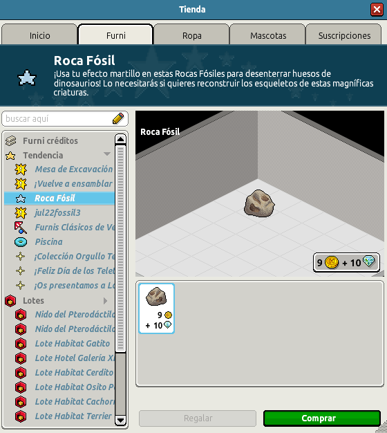 Así es, estamos hablando del nuevo furni crafteable que ha llegado al catálogo, conocido como Roca fósil, y que contará con un precio de 9+10