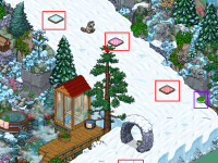 Interactúa con los siguientes 3 furnis marcados en verde para encontrar las recompensas que Santa ha escondido.
