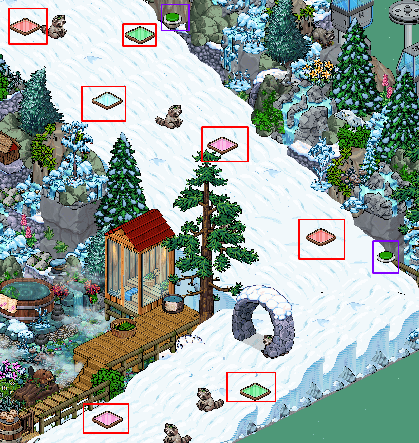 Interactúa con los siguientes 3 furnis marcados en verde para encontrar las recompensas que Santa ha escondido.