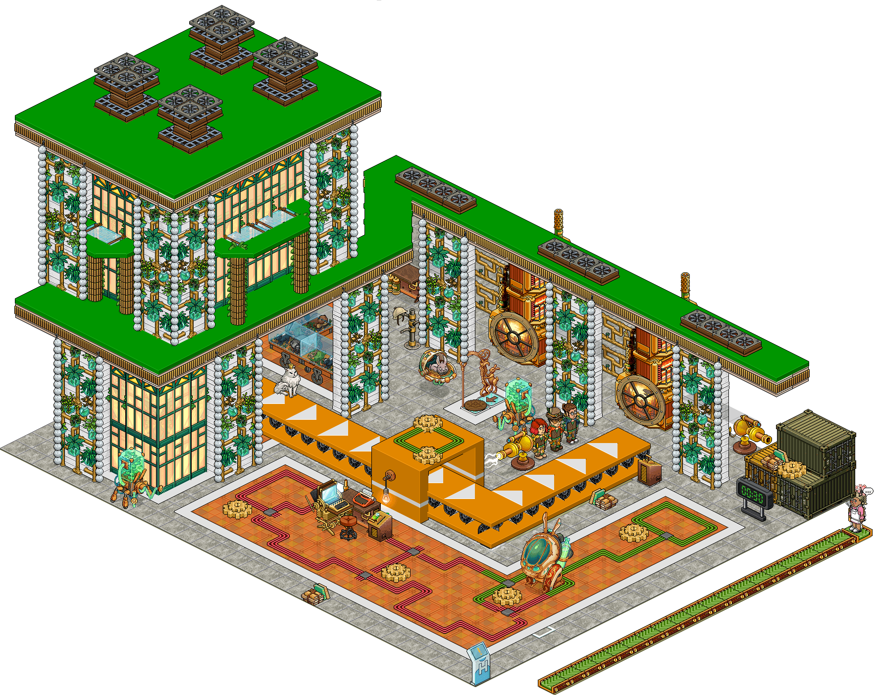 Una vez hecho esto, siéntate en el taburete frente al Ordenador Solarpunk y di *hack*.